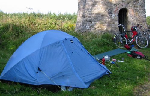 Our tent is rather unusual one which I should imagine didn't sell well because we got it cheap and they don't make it anymore. It has quite suitable for us though because the bell end is big enough for all our panniers and has room to cook. It weighs about 3kg which is not the lightest but it is compact enough for everything except the poles to fit into one small front pannier, and it is free-standing so you can use it on hard ground or even in a hotel room. This is useful because the inner is all mosquito netting. It is a North Face Cirrus.