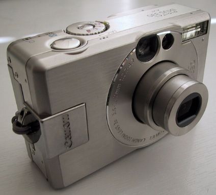Canon IXUS330. Before this I had a Canon Powershot S10 (with which I took the photo above) which I thought was great except that I wanted more range in the zoom. The IXUS330 has a 35-105mm (35mm equivalent) which still isn't much use for wildlife but it is so small and light that I can't really complain. It takes very nice photos and the 'Photo-stitch' software lets you create smashing panoramas. If the computer packs up I'll simply put the Compact Flash card in the camera which at 512Mb is enough for a thousand hi-res photos.