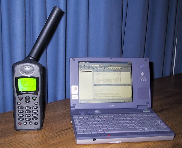 The cell phone gives a faster connection than the satellite phone so it is cheaper when you have coverage. It also works indoors and can be left on all the time without consuming more power than my dynamo and solar panel can provide. Iridium don't support SMS either so it's handy for that. As a bonus the phone I have can access my POP and SMTP email so it will be useful if the computer packs up. It's an Ericsson T39.