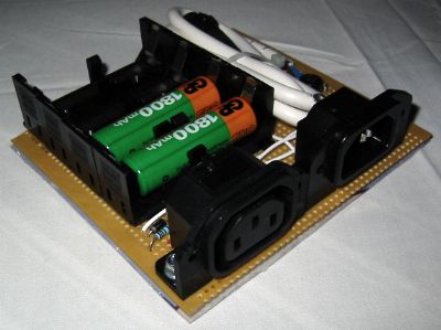 Once we were on our way we found that we were having difficulty supplying charged AA cells for Ju's torch. One day I realised that there was enough 'headroom' in the output voltage of the solar panel to put two NiMh AA cells in series with it and still charge the eleven AA cells in the multi-charger. Alan Watson at Porpoise built me what I needed and sent it out with some bicycle spares. The extra battery holders are for an alternate function where four AA cells are charged from the Dynohub, and don't even think about connecting those IEC sockets to the mains (they connect to the 12V solar panel)!