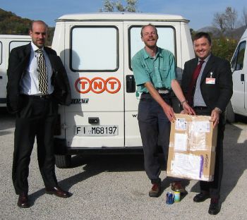 A few days later were in Rieti to collect a parcel of winter clothing from a TNT office there (thanks Dr Watson!). The TNT people were very friendly and said we were the first cyclists to have collected a parcel. Our only problem was how to fit it all on the bikes!