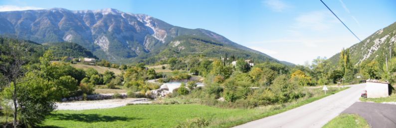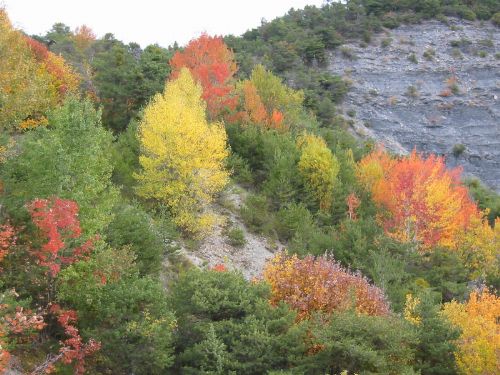 We spent a night camped halfway across the Rhone where it was split into two by the Iles Margeries. Then it was uphill again as we headed towards Sisteron and the the Alps. All around were beautiful autumn colours and vineyards with the vines heavy with grapes.