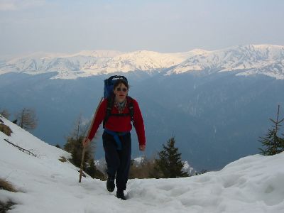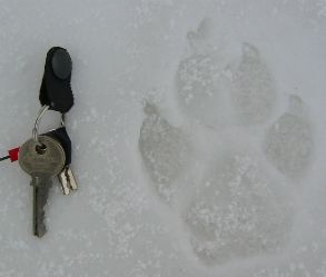 About an hour up we met two climbers (Alex and Mircea) from Bucharest, one of whom was a student of our friend at the Geography department! They reassured us that the cabanas would be open and serving meals even if it was Monday. They also pointed out the route, told us to be quick and cheerfully asked if we had torches. They told us to watch out for the bears. We saw a lot of prints like the one shown below, but they are just wolves or possibly very big dogs. European brown bears are very common in this part of the Carpathians, they were protected by Nicolae Ceausescu so he could shoot them. (The key is 4.5cm long Paul) |