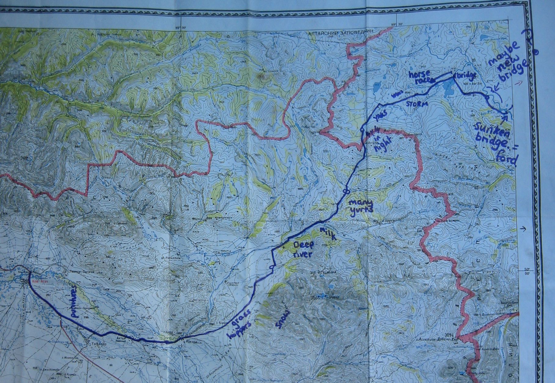 We had a lot of trouble finding out if this route was even possible, so we thought others might find this information useful. You can get maps of Altai in Novosibirsk at the Central House of Books, on Krasny Prospekt near Ploshchad Lenina. The only map of Tuva we had was our road atlas, which was wildly inaccurate regarding the passability of the roads and tracks.