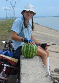 The day after leaving Novosibirsk I developed a fever and we had to make camp about lunchtime so I could lie down. While I was sleeping some cow herds on horseback came to chat to Ju. They let her have a ride on one of their horses and asked all the usual questions about where we from, where we were going, how much money we had, plus some suspicious ones like did we have roubles and would we be camped here all night? Eventually they had to go and herd some cows but they said they'd be back so I dragged myself out of bed and we decamped 10km down the road. Later we discovered that our spare bike pump and an almost empty bottle of oil had disappeared so we were glad we'd decided to move.