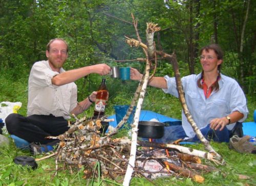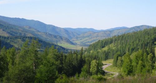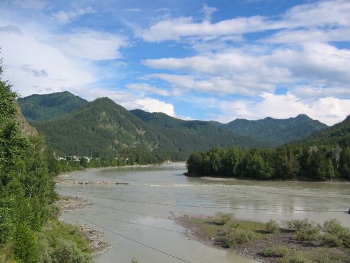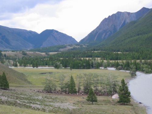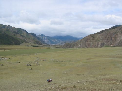 Here the valley is wide and flat and the river is sedate. Lots of people do easy rafting trips down it. We even met some English people who had been working as English teachers in Omsk.