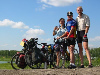 We had arranged to meet a friend of William's called Vena in Novosibirsk. Coming into the city we realised that we had no plan for how we were to meet up, and we couldn't find any telephones. Eventually we got directions to his house and as we were getting near we finally saw a public phone. Just as we were stopping a man pulled up on a motorbike and asked if we were "Mark and Julie from England" - it was Vena!