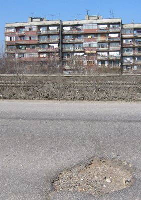 After our day off we started northwards. The urban roads had some impressive potholes, but once we were in the country the traffic was very light. We were passed by about ten racing cyclists, the first we'd seen since Italy. There are quite a few horse and donkey drawn vehicles on the roads which pleased Ju, and when we stopped in a village people were friendly and asked us questions in Bulgarian, German and English. The sun shone and going uphill was warm work, although patches of snow are still lying by the road and we saw frozen over ponds.
