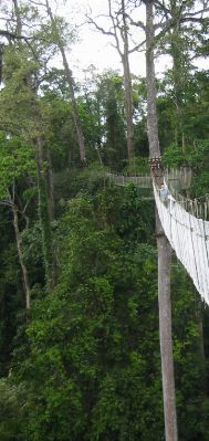 Soon after the photo above we rejoined the highway which took us to Mohan, the Chinese border town. On the way we stopped in Mengla and visited the nearby "Aerial Walkway Park". Here we got an unusual view of the forest from narrow walkways suspended between the trees. We didn't see much wildlife but the trees were impressive and we saw lots of insect life. |