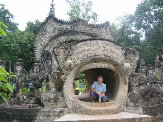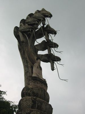 In Nong Khai we spent a pleasant few days at Mutmee guesthouse until it was time to go to Bankok to meet Ju's sister Andrea and her partner Laura. In Nong Khai we met Kerstin who runs Travel to teach, which arranges placements for volunteers of a whole range of nationalities who wish to gain experience of teaching English or IT. We also visited the sculpture park there which was designed by the same artist as the Vientiane sculpture park.
