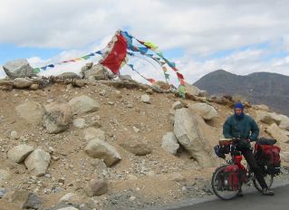 Next day we descended (pedalling against the wind most of the way) to a village called Sangdui where we found a friendly Tibetan family running a truckstop. We spent two days there recovering our strength, Ju fought off a cold and Mark spent a day in bed with a migrane. Then we were off again and up to the highest pass of the trip, 4870m, slightly higher than Mt Blanc! This pass proved to be a weather boundary, on the southern side the air was immediately warmer and blue skies prevailed.
