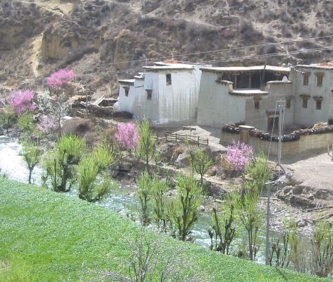 One more pass (where we camped on the top and were snowed on) and then we started to lose height in earnest. As we descended we found trees just coming into leaf, green fields and apricot blossom. It was spring!