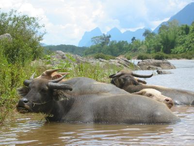 In Pak Mong we left our bikes for a couple of days and went to visit Muang Ngoi Neua, a small village accessible only by boat that has become a popular hang out for western tourists. The village was delightful, quiet and unspoilt and we spent a very pleasant couple of days swimming in the river, watching butterflies and enjoying good company and conversation in the evenings.