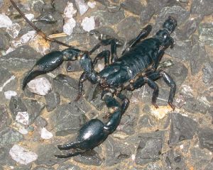 Next morning we saw a local cyclist abandon his bike and stare intently at something by the road. We stopped to see what he was looking at and saw that it was a big scorpion. The man deftly chopped off its sting and then used a loop of grass to capture it by a front pincer. He then hopped back on his bike and rode off with this tasty snack dangling from the handlebars, waving its legs in the air! |