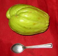 Thankyou to Gavin Jowitt, who tells me that in Oz this fruit is a Choko. I have yet to look up recipes for it.
