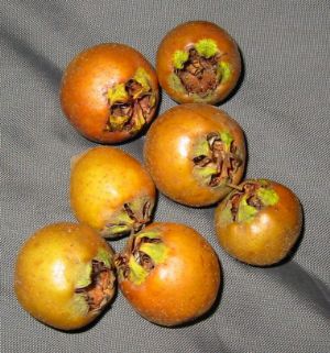I spotted trees bearing this fruit in several Italian gardens and figured that they may be edible. Thanks to Ingrid I now know that they are medlars and that they are indeed edible. When I saw some growing wild on an abandoned terrase, I had to try them. (Looks like things have not changed all that much from those rosehip eating days)
