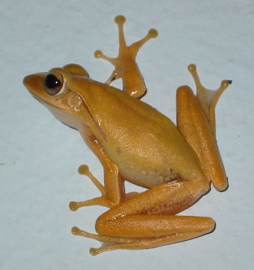 Tree frog found in a shower at "Jungle huts" bungalows, Khao Sok, Thailand, June 2004!