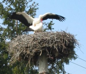 Mating white storks (Ciconia ciconia) seen in southern Romania, late March 2003: