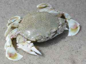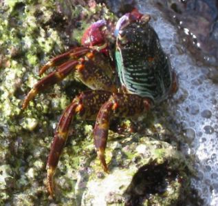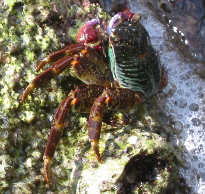 Shore crab found on a rocky shore in northern Corfu, December 2002. It had been attracted by us washing our pans in the sea.